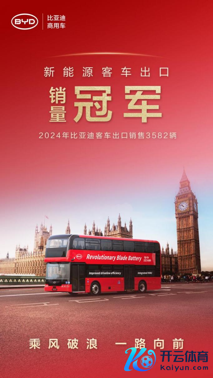冠军的荣誉不啻于此,现在,比亚迪新动力汽车出海踪迹已遍布群众六大洲的100个国度和地区,超400个城市。此外现金九游体育app平台,比亚迪商用车也成为2024年新动力客车出口销量冠军
