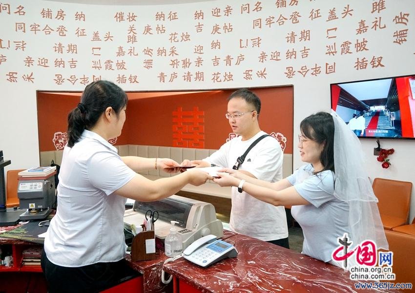 一大早,武陵源区婚配管事登记中心门口便排起长队,准新东谈主们手捧鲜花,满怀期待,脸上飘溢着幸福的笑貌。使命主谈主员宥恕地指点全球进行各项登记历程,通盘这个词大厅里饱胀着温馨与快活。